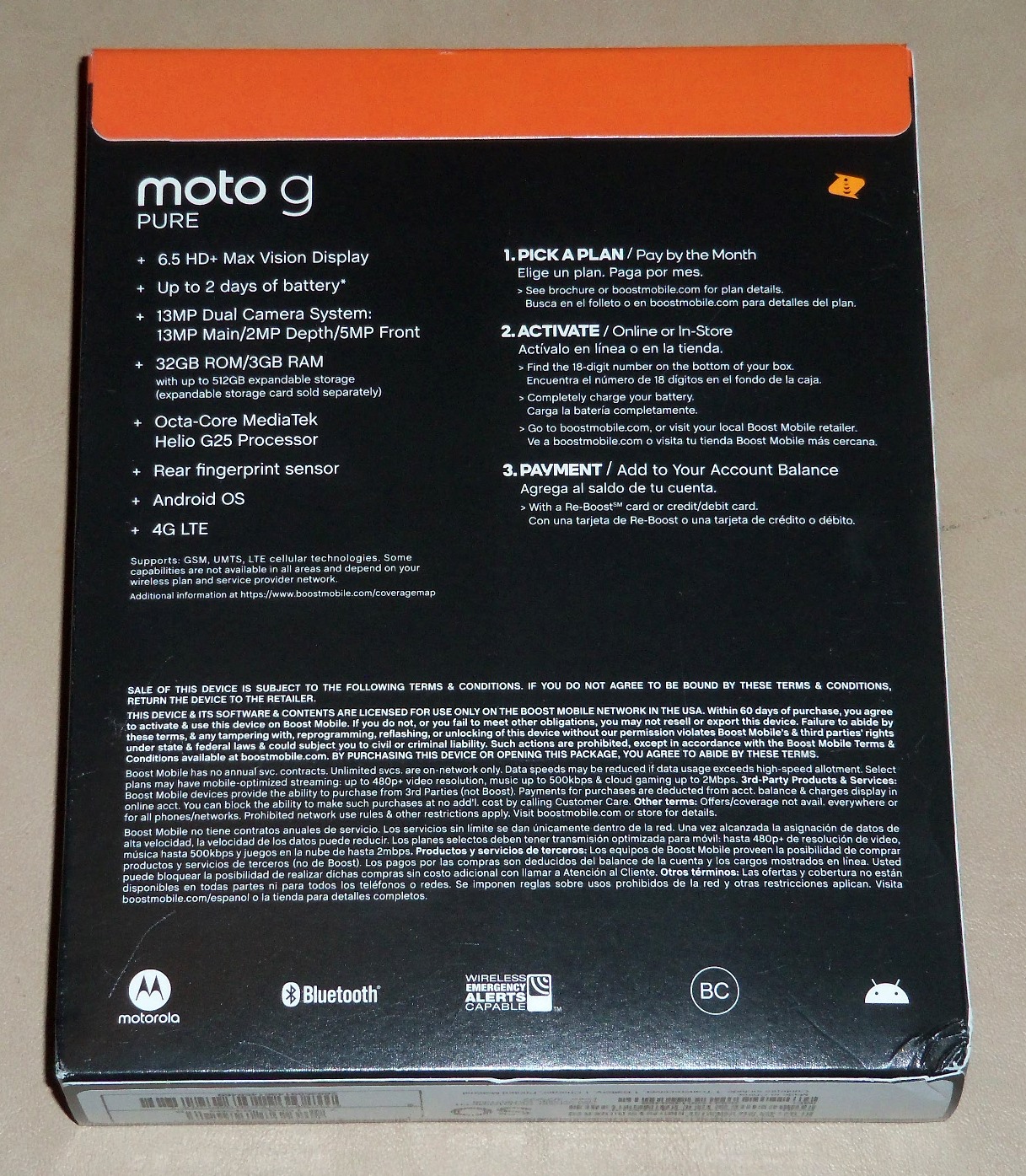 Activating the phone followed the standard procedure. The SIM card was inside an envelope that was taped to the back of the box. I put it in the phone and typed the IMEI number into the Boost Mobile website to facilitate the swap between the Tribute Empire and the moto g pure. The only snag was that I wasn’t sure if I had the updated SIM card necessary for the 5G network. I guessed yes based on the criteria that the site listed.