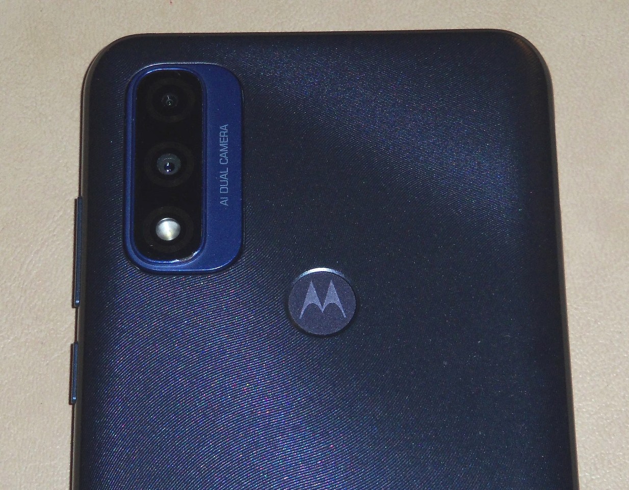 The back is the same dark blue as the Motorola box, with a swirly texture added for a better grip (though it’s still kinda slippery). A lighter shade of blue wraps around the cameras and flash mechanism, which are arranged on the top left corner like traffic lights, and covers the volume and power buttons too. There’s also a small circle near the back’s center with the Motorola “M” stamped on it that functions as the fingerprint reader.